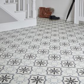 D C Fix Grey White Moroccan Tile Effect Vinyl Tile Pack Of 11 Diy At B Q